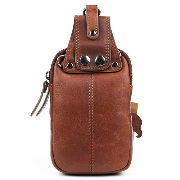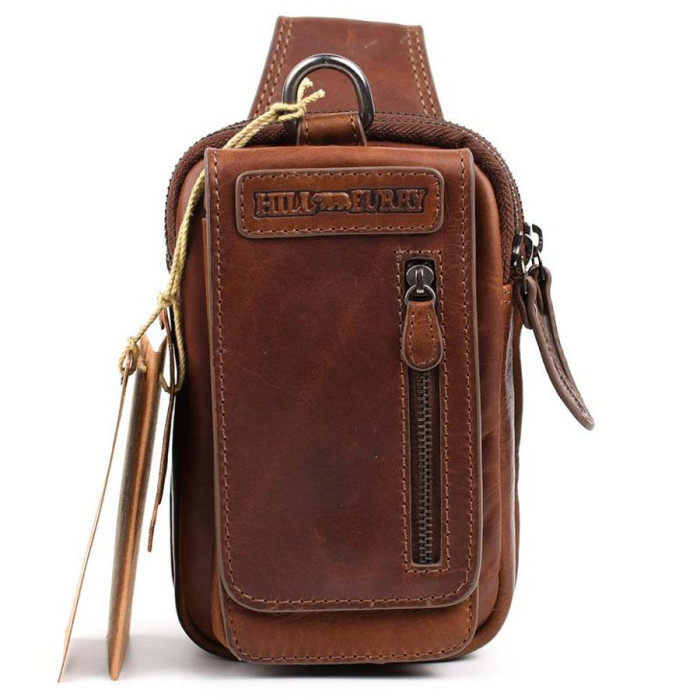 Шкіряна сумка чохол, через плече Hill Burry HB100B коньячна - Закривається на блискавку на три сторони