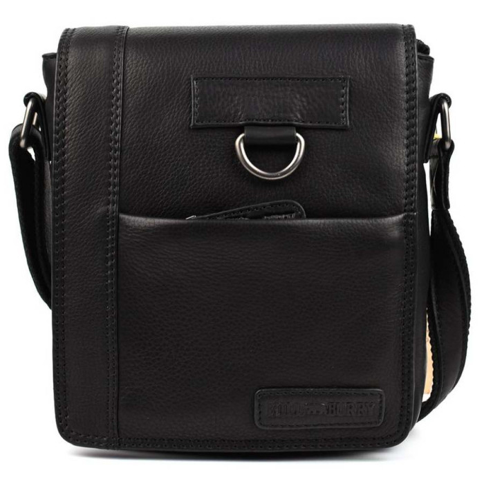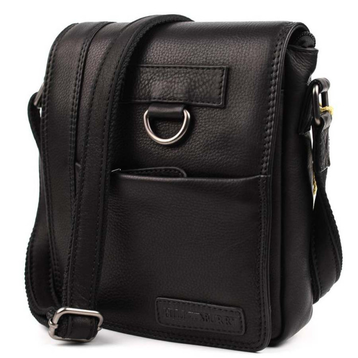 Сумка планшет через плече HILL BURRY HB3057A чорна Чоловіча італійська сумка на плече. Середній розмір, якісна шкіра та підкладка.