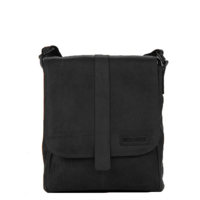 Шкіряна сумка через плече із клапаном чорна Hill Burry HB3095