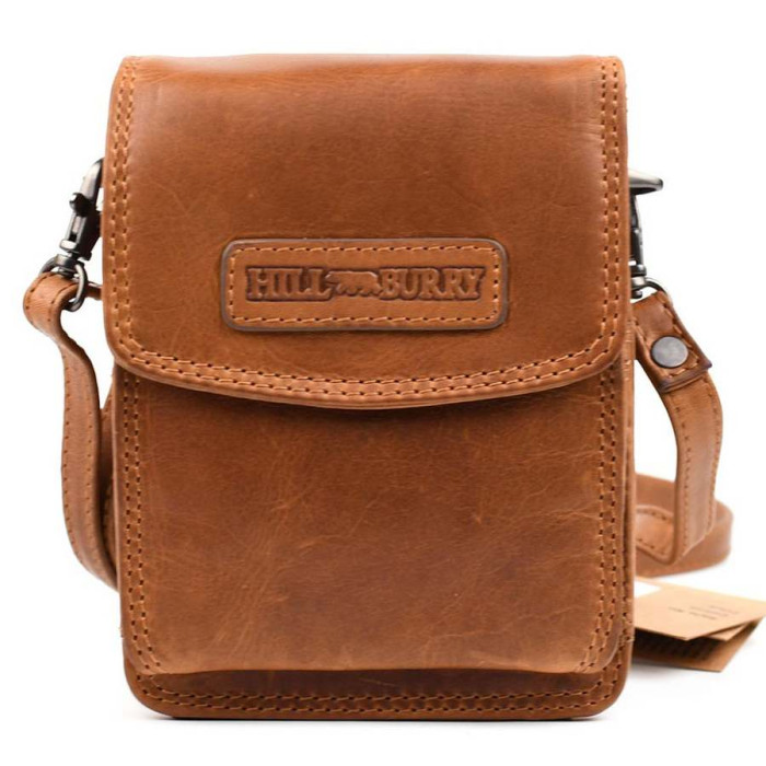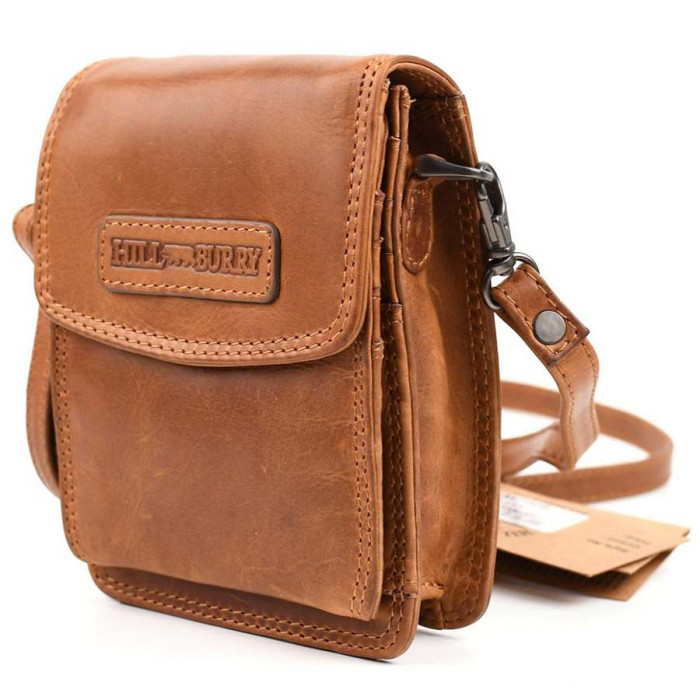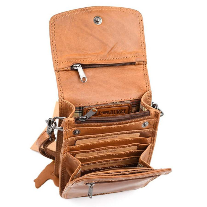 Шкіряна сумка кардхолдер через плече Hill Burry HB3171B коньячна - безліч слотів для карток, кишень на блискавці