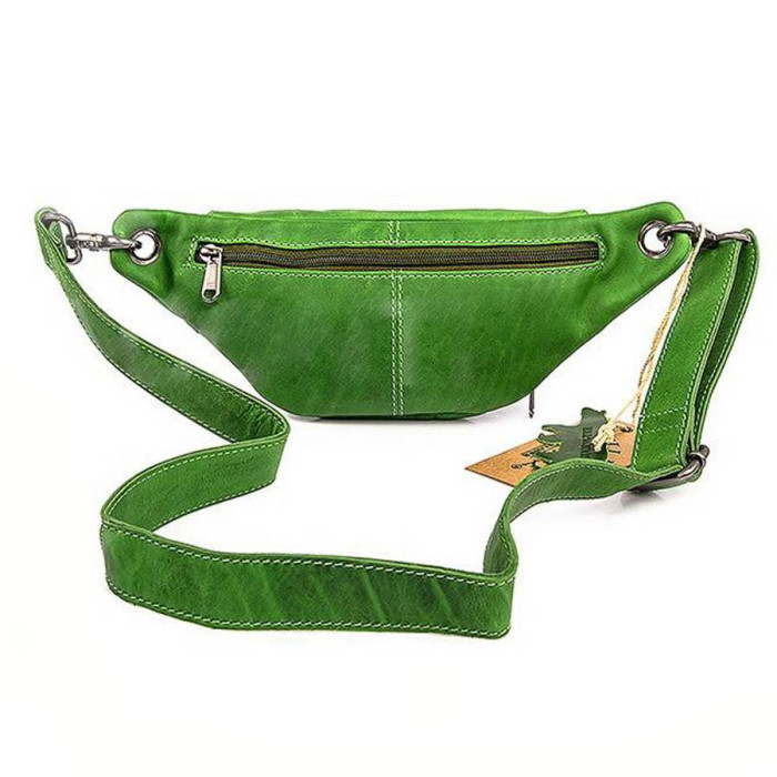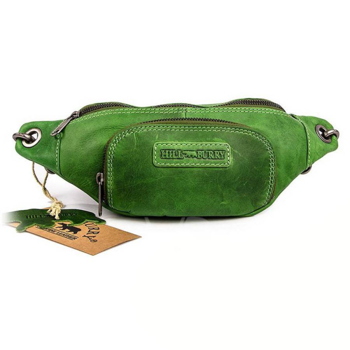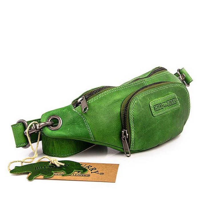 Поясна сумка шкіряна чоловіча або жіноча Зелена Hill Burry HB3314. Передня накладна кишеня на блискавці, одне основне відділення. Задня кишеня на блискавці. Всередині тканинної підклад. Ремінь регульований, на двох карабінах.