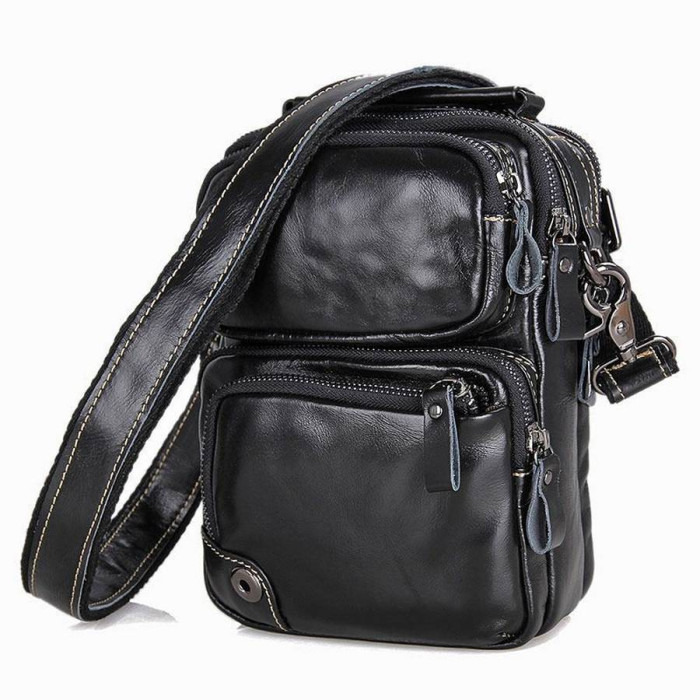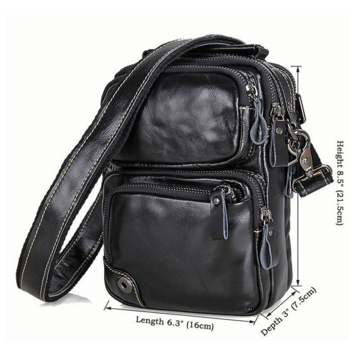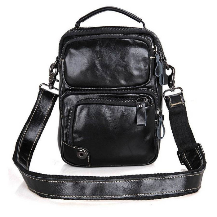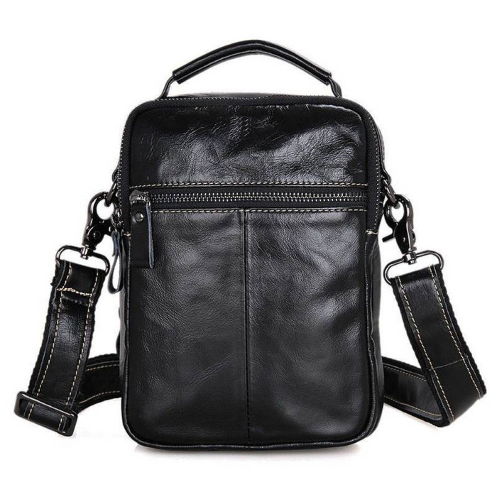 Чоловіча шкіряна сумка з ременем через плече, чорна.