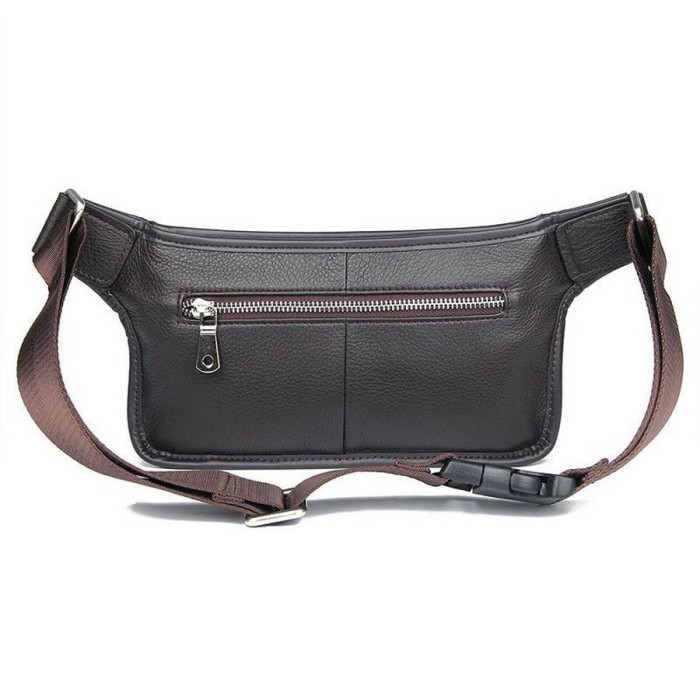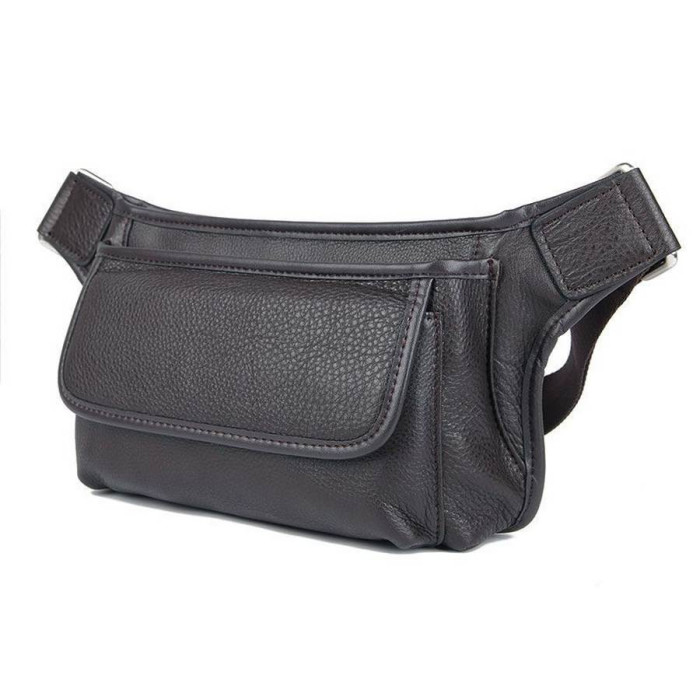 Шкіряна сумка для носіння на поясі. Підходить для прогулянок, поїздок. Ваші руки завжди залишаються вільними, а речі в надійному місці. Виріб виконаний в темно-коричневому кольорі з м'якої телячої шкіри. Два роздільних кишені на блискавці, а в передній частині розташувався кишеню на двох магнітах, і ззаду - потайна кишеня на блискавки. Текстильний ремінь. Фрнітура-срібло.
