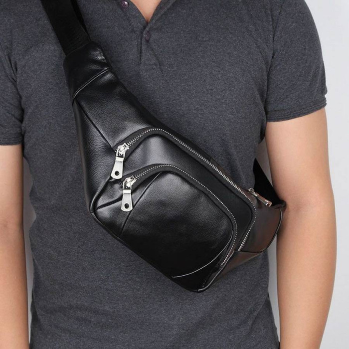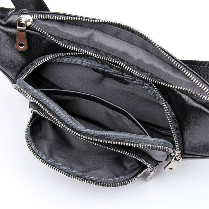 Чоловіча сумка на пояс виготовлена з натуральної телячої шкіри. Стильний аксесуар для повсякденного використання. Носити дану модель можна як через плече, так і на поясі. Дуже зручна при використанні, так як має три окремих відділення на блискавці, що ідеально підійдуть для дрібних речей. Усередині середнього відділення є один відкритий кишеню і один врізний на блискавці. Сумка John McDee 3023a дуже універсальна і зручна в носінні. З даними аксесуаром зручно їздити в транспорті або брати з собою в подорожі.