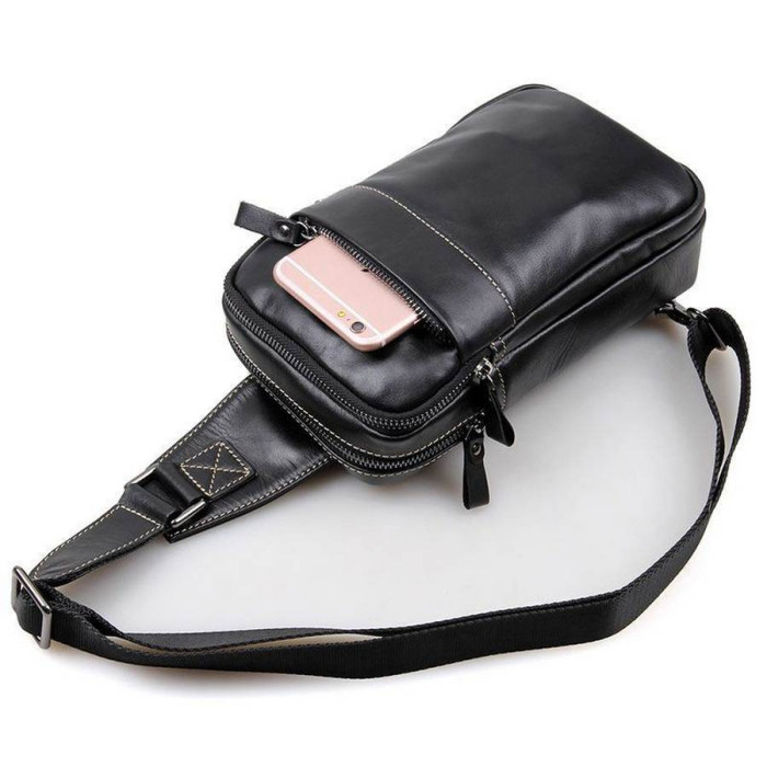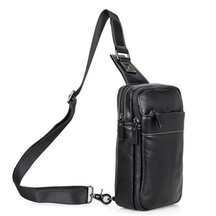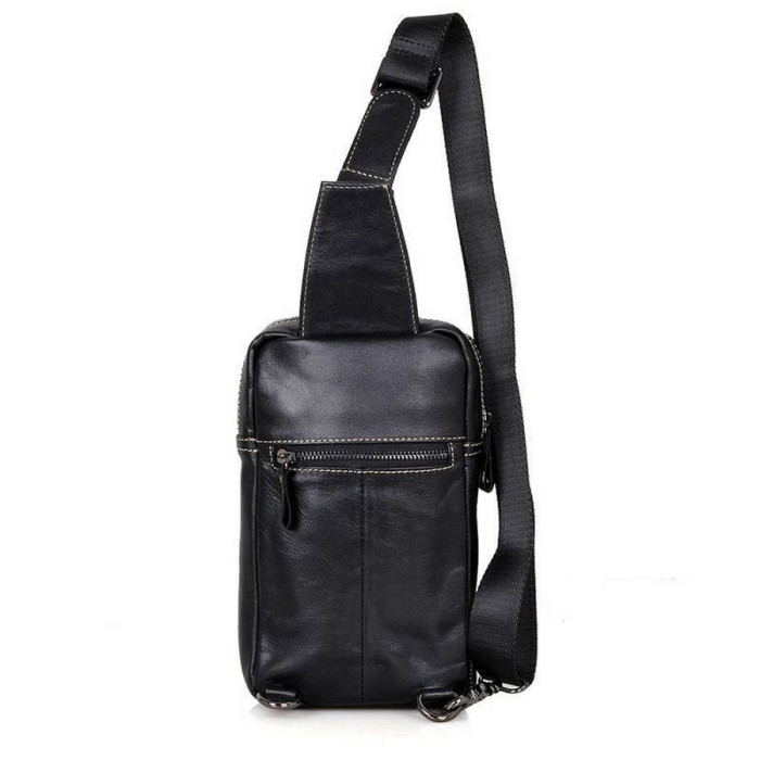 - Оригінального дизайну шкіряний міні-рюкзак на одній шлеї бренду John McDee виготовлений з натуральної телячої шкіри чорного кольору відмінної якості. Стильний відлив шкіри і контрастна біла відстрочка додають неповторність даної моделі. Рюкзак відповідає бренду і останнім тенденціям моди і якості, практичний в носінні і незамінний в подорожах і поїздках.