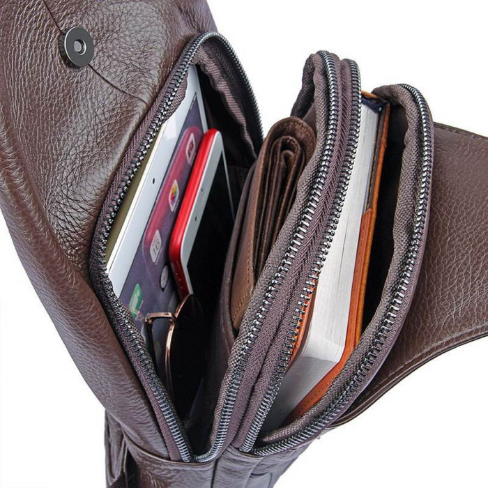 Чоловічий шкіряний слінг рюкзак з натуральної телячої шкіри, на одне плече JD4004C John McDee. Чудовий варіант для сучасного жителя мегаполісу. Модний аксесуар на моношлейке через плече - стильний, сучасний, зручний, практичний в носінні і незамінний в подорожах і поїздках.