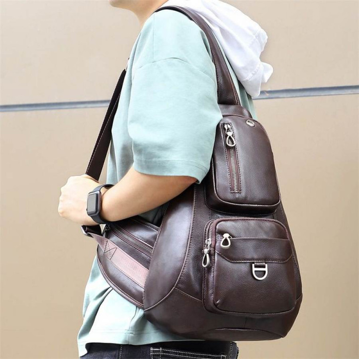 Великий рюкзак на одне плече, сумка слінг John McDee 4025 коричневі. Функціональний рюкзак слінг з безліччю кишень на блискавці та об'ємною структурою