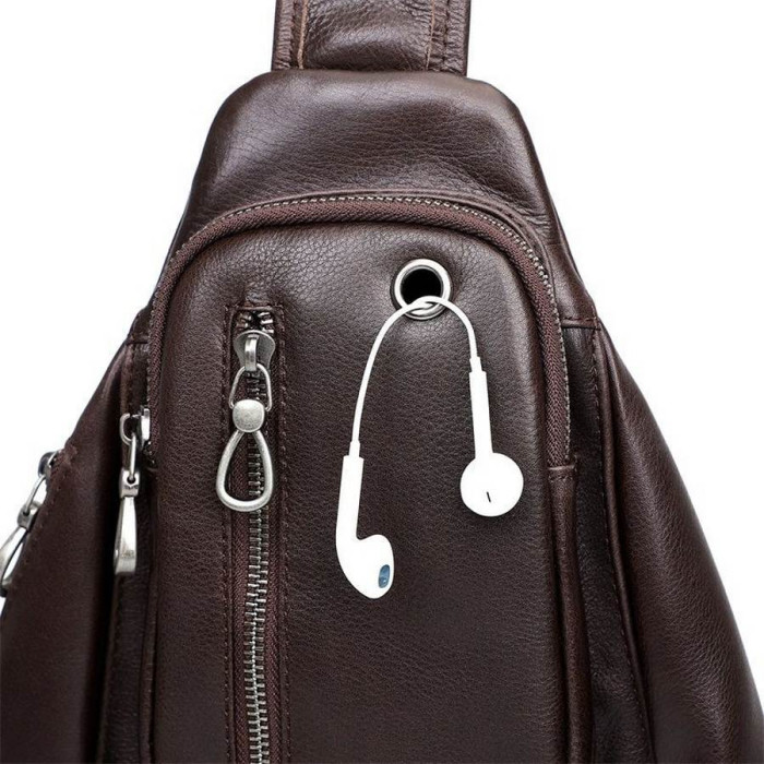 - У передній частині рюкзака є 4 кишені на блискавці та отвір для кабелю навушників.