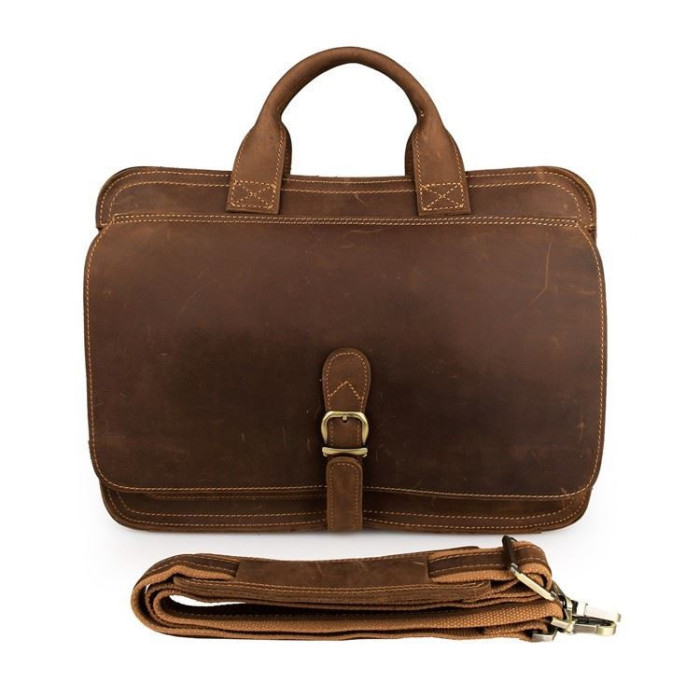 Багатофункціональний чоловічий портфель з натуральної шкіри JD6020B бренду John McDee. Гарний аксесуар для документів А4 і ноутбука до 13 ". Виріб на два відділення, з трьома кишенями всередині: два відкритих для дрібних предметів, і один виразний для особистих документів. Лицьову сторону прикрашає шкіряний клапан з хлястиком і магнітної кнопкою. Під клапаном ховається чудовий органайзер - тримач для ручок і кілька кишень з блискавками. На задній стороні аксесуара розташовується місткий кишеню з блискавкою. Сумка оснащена двома маленькими ручками для носіння в руці, і шкіряним плечовим ременем. Зручна модель для роботи або навчання.