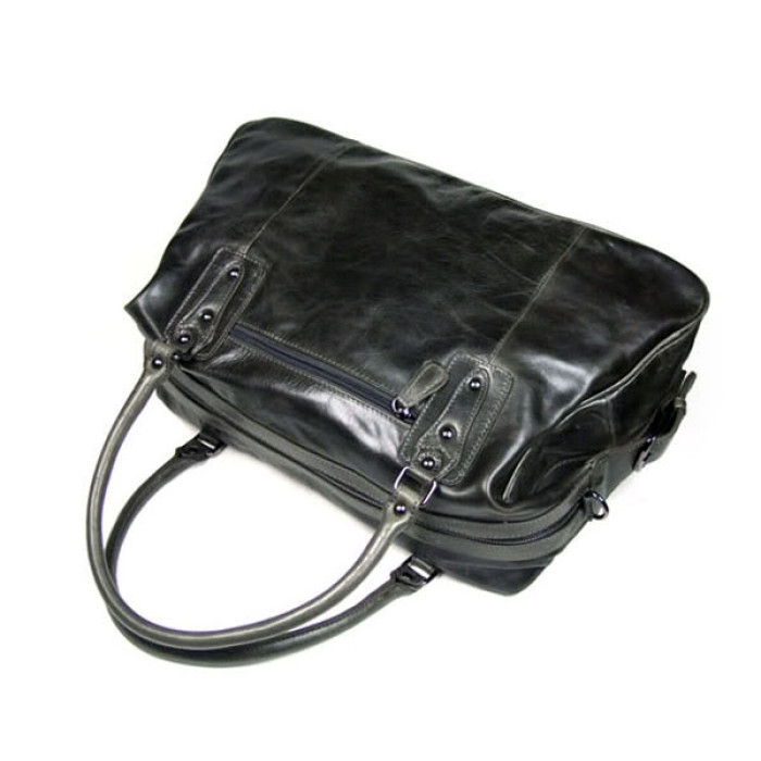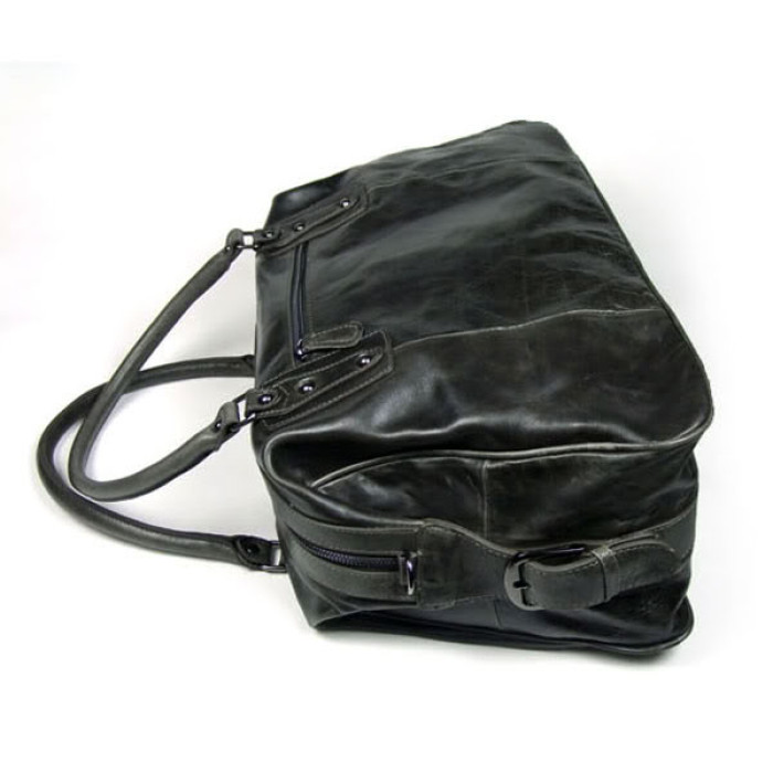 Стильна вінтажна шкіряна дорожня сумка сіра