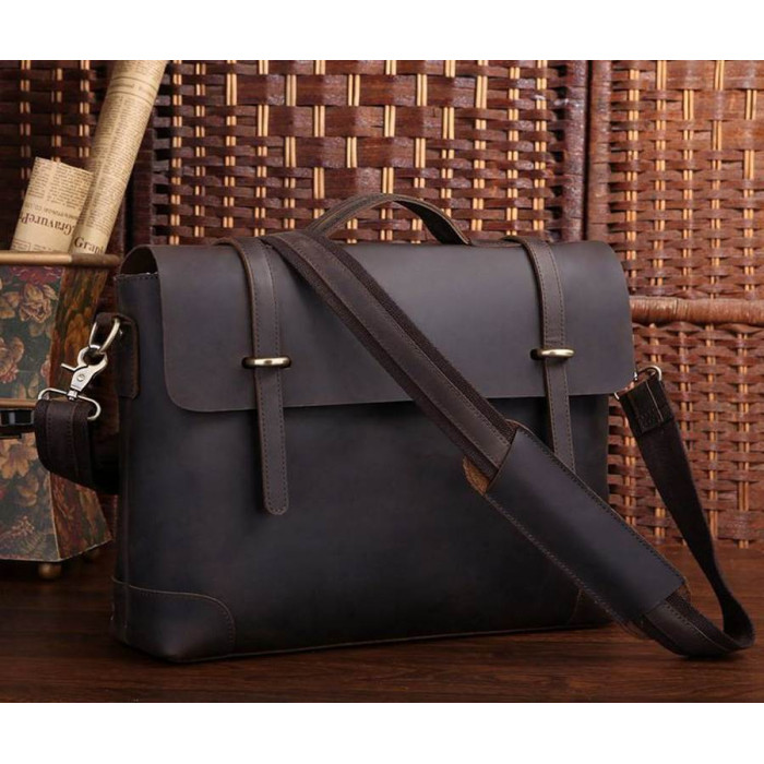 Чоловічий шкіряний портфель, сумка, ретро-стиль, матова темна