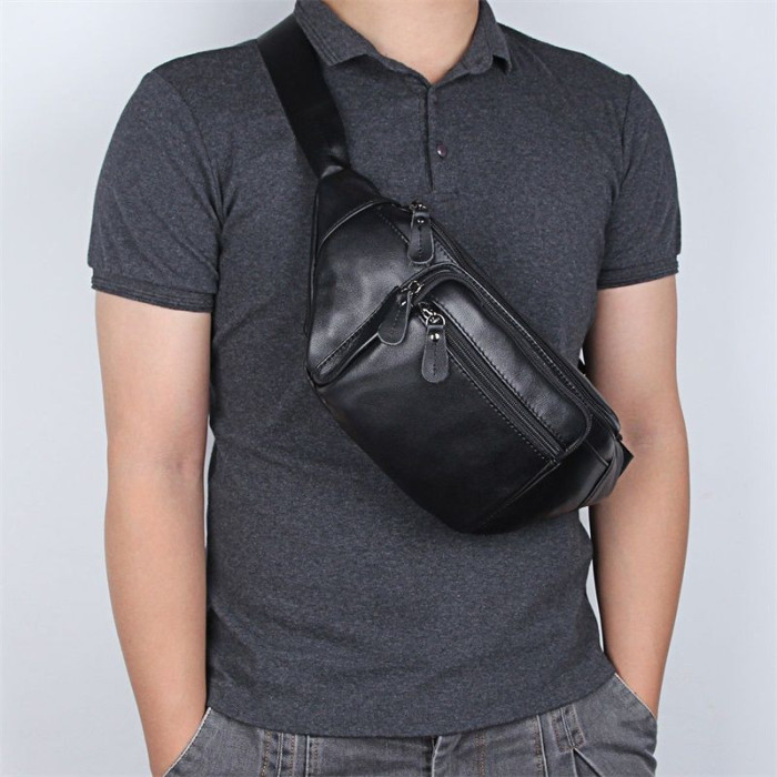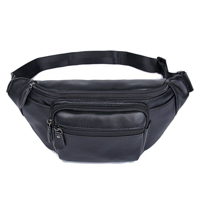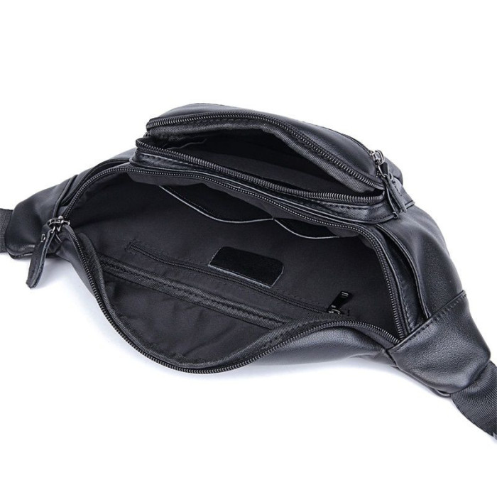 Бананка шкіряна, сумка напоясна чорна велика 7218LA від John McDee 1