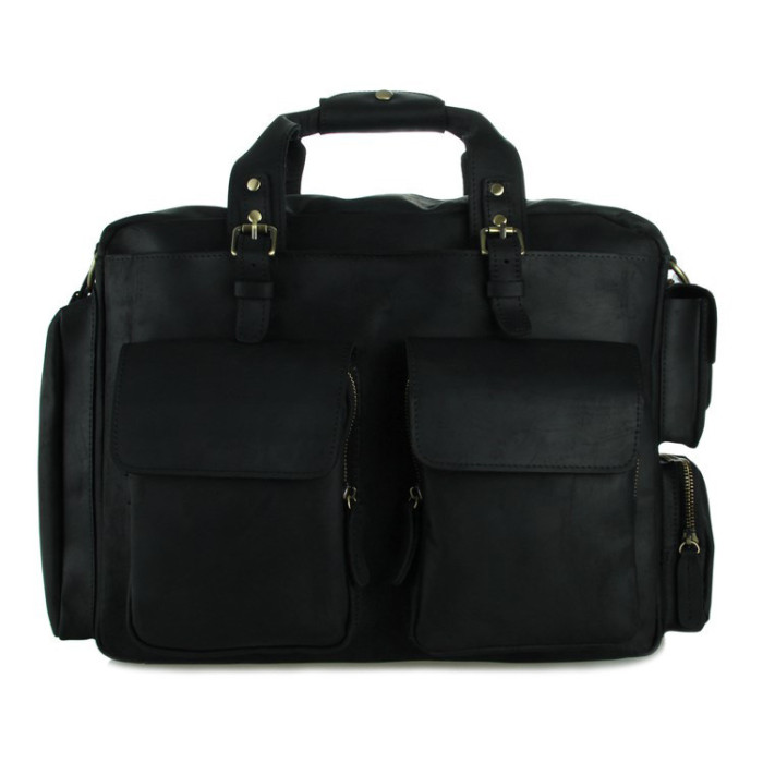 Містка шкіряна сумка 2 в 1 для чоловіків John McDee 7219А у чорному кольорівиготовлена з натуральної телячої шкіри чорного кольору високої якості, має високоякісне оздоблення та стильний двосторонній дизайн. Оригінальне глянсове забарвлення та відлив шкіри надає стильності та дорогого вигляду виробу. Містка сумка, має безліч відділень і підійде для щоденного використання, як в офісі, так і в подорожах.