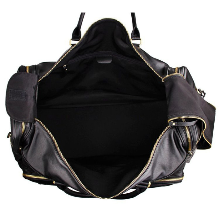 Внутрішнє відділення дорожньої сумки з натуральної шкіри має безліч вільного простору для різного роду речей. Всередину сумки помістяться: блокноти, книги, журнали, особисті речі і навіть ноутбук. Там же знайдеться місце і для гаджетів, приємних дрібниць, смартфона, ключів і портмоне.