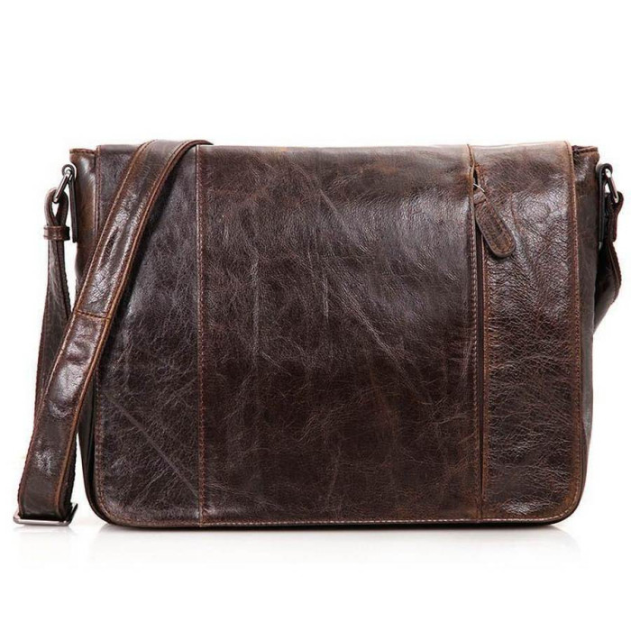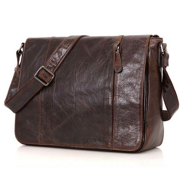- Практична шкіряна сумка для чоловіків фабричного бренду John McDee 7338C - стильна і надійна шкіряна сумка фабричного бренду John McDee виготовлена з натуральної телячої шкіри глянцевого темно-коричневого кольору високої якості, має високоякісну обробку і фірмовий модний дизайн. Оригінальна забарвлення і глянсовий відлив шкіри надає стильність і дорогий вид виробу. Сумка відповідає бренду і останнім тенденціям моди і якості. Має класичний стриманий дизайн - простий, лаконічний, зручний і надійний. Сумка практична в шкарпетці і містка, її можна використовувати кожен день для різних цілей: дозвілля, робота, навчання і т.д.