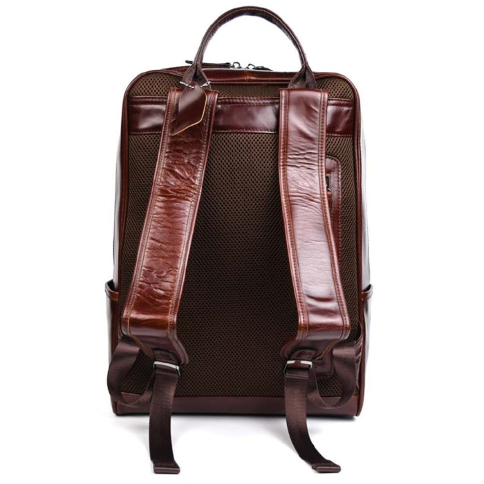 Чоловічий шкіряний рюкзак John McDee 7347Q Відмінний чоловічий шкіряний рюкзак фабричного бренду John McDee виготовлений з натуральної шкіри коричневого кольору високої якості, має високоякісну обробку і стильний класичний дизайн. Оригінальне фарбування шкіри надає стиль і дорогий вигляд виробу. Фурнітура рюкзака якісна та гармонійно доповнює дизайн виробу. Рюкзак відповідає бренду та останнім тенденціям моди та якості, призначений для щоденного використання як на роботі, так і на прогулянці. Буде оригінальним доповненням образу та стилю свого власника. Рюкзак зручний у носінні, місткий та ергономічний.