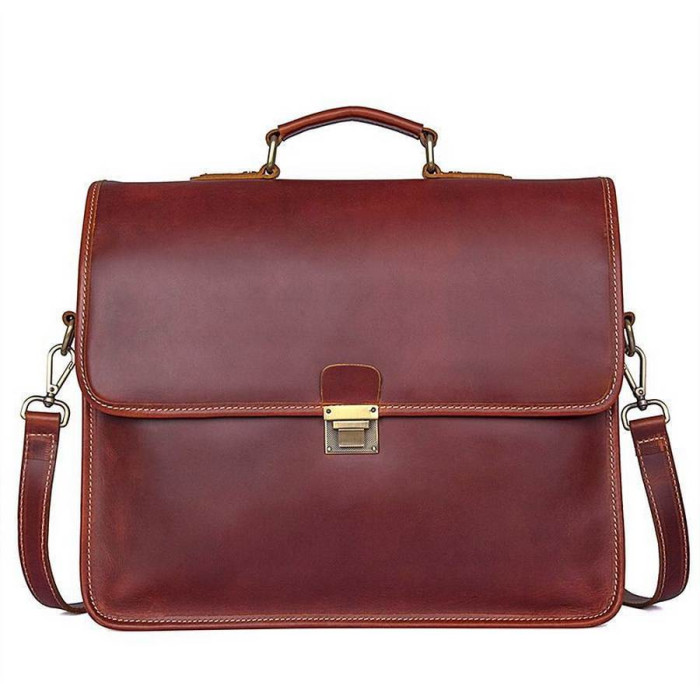 У популярному інтернет-магазині "Сім Сумок" з'явився в наявності оригінальний шкіряний портфель, виконаний у двох кольорах (коричневий і червоний), а також з натуральної міцної шкіри. Виробник гарантує не тільки високу якість, але і багатофункціональність. Варто зауважити, що подвійні ремені портфеля дозволяють регулювати вільно довжину. Дана модель включає в себе: дві кишені спереду і кишеня на блискавці на спині. А також, є дві відкритих кишені для портмоне і три слота для ручки під клапаном, що робить цю модель портфеля зручною і місткою в роботі, навчанні і т.д. Вся фурнітура виконана з міцного темно-сірого металу, що додає моделі вишуканості і вінтажності.