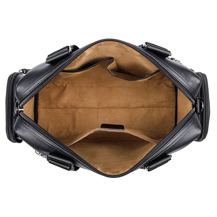 Шкіряна дорожня спортивна сумка через плече чорна John McDee 7420A