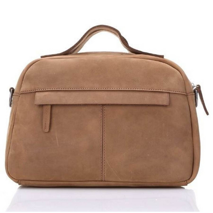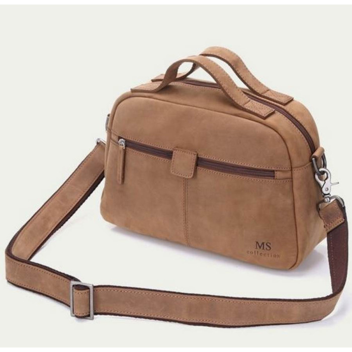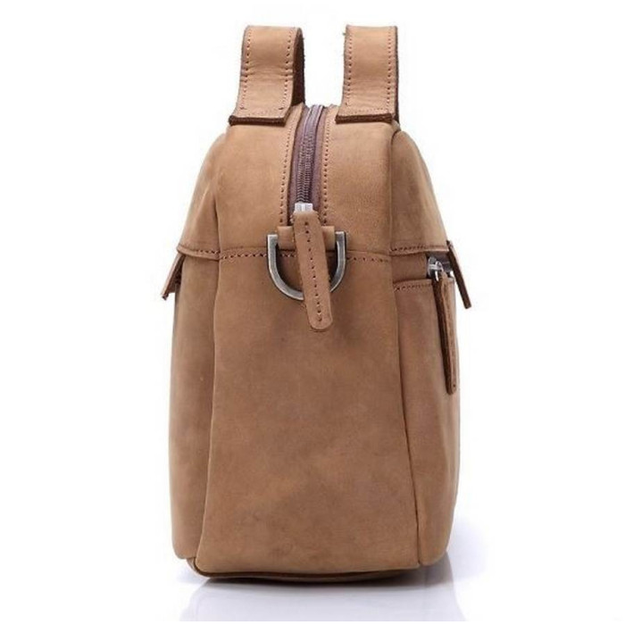 Компактна чоловіча сумка з натуральної матової шкіри JD8016C бренду John McDee. Виріб на одне відділення з внутрішніми кишенями: два відкритих для телефонів, і одна врізна з блискавкою для особистих документів. По обидва зовнішнім сторонам сумки розташовуються врізні кишені з блискавками. Аксесуар оснащений двома маленькими ручками і ремнем через шкіряним ременем через плече.