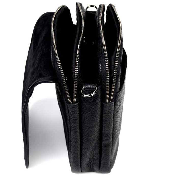 Чоловіча сумка через плече на три відділення месенджер Limary Lim-015FA чорний флотар - зручний і функціональний месенджер з натуральної шкіри флотар. Втягнути три відділення під зовнішнім клапаном на магнітах: два з них та блискавки, середнє на магніті. Така конструкція сумки одночасно є функціональною - речі можна розмістити у відділах, а закриття клапаном - захищає всі три відділи від опадів, стороннього доступу і створює витончений вигляд.