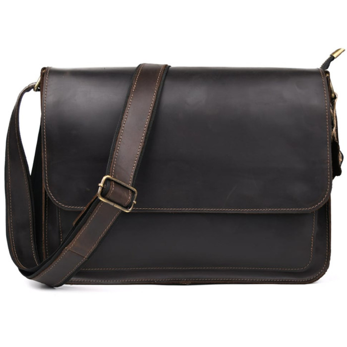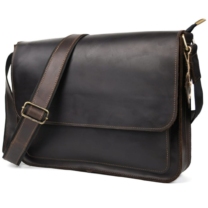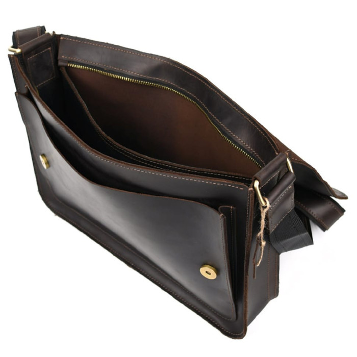 Шкіряна сумка через плече (мессенжер) Limary з натуральної кінської шкіри крейзі хорс. Закривається клапаном на магнітах.