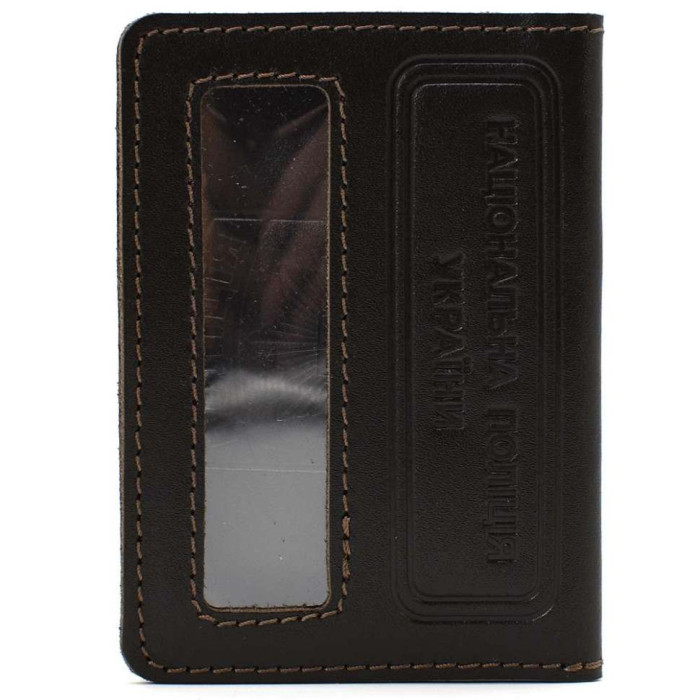 Обкладинка Національна Поліція України Limary lim-3990GC коричнева Компактна шкіряна обкладинка для посвідчення Національна поліція України з прозорим віконцем зовні. Тонка, мінімалістична структура у формі книжечки. Зберігає ваші документи від передчасного зношування, опадів, сонця, вологи. Пошита із натуральної шкіри.