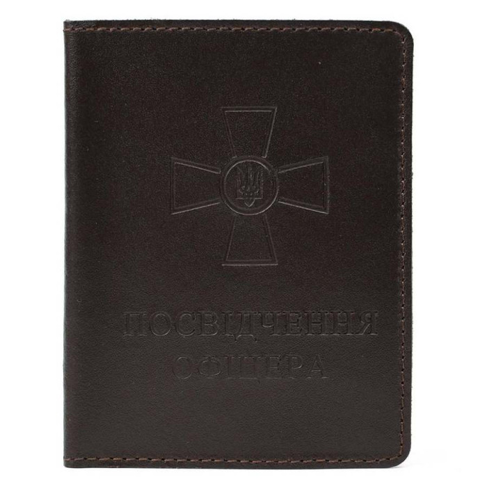 Функціональна та містка обкладинка для посвідчення офіцера та інших документів. Обкладинка виконана з натуральної телячої шкіри з прозорими краями з боків.