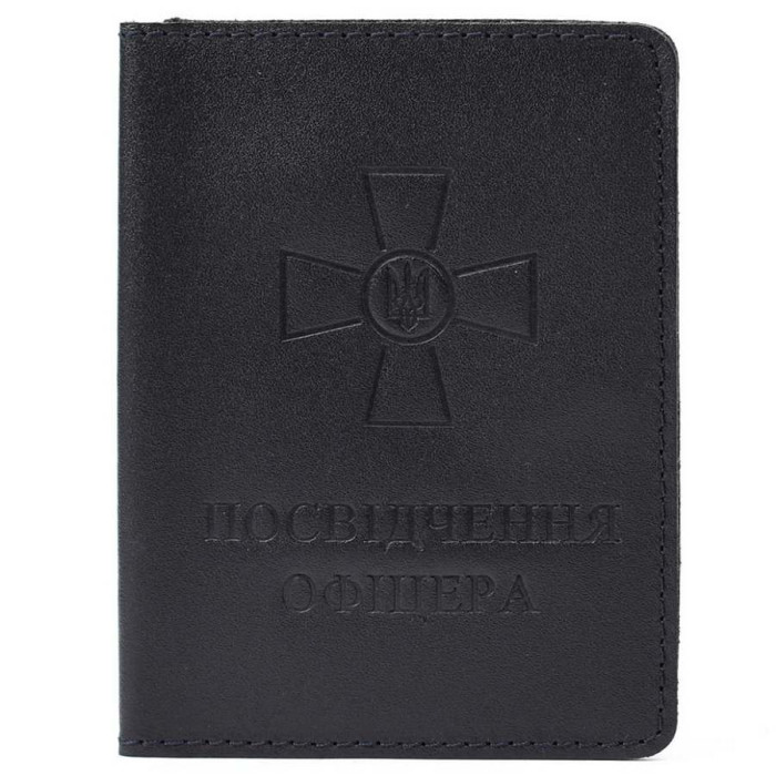 Функціональна та містка обкладинка для посвідчення офіцера та інших документів. Обкладинка виконана з натуральної телячої шкіри з прозорими краями з боків.