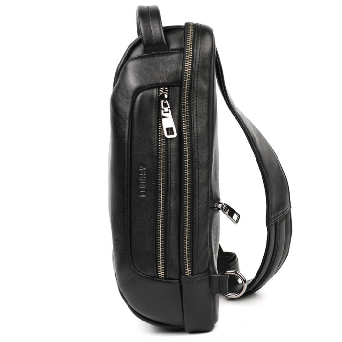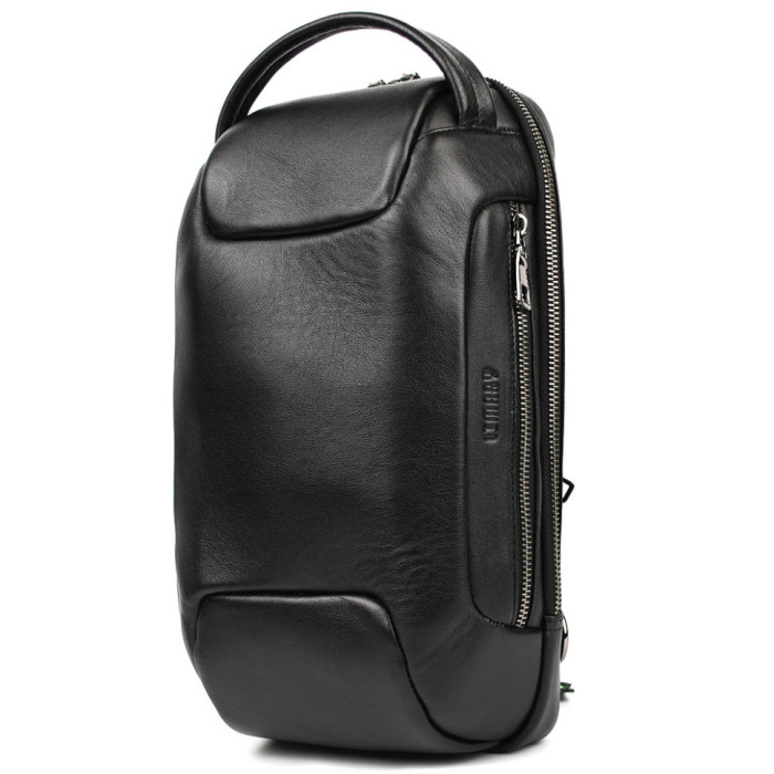 Чоловічий шкіряний мега-слінг Limary Lim-718GA чорна Наппа Чоловічий шкіряний мега-слінг Limary Lim-718GA чорна Наппа - великий об'ємний шкіряний рюкзак-слінг (косуха) у футуристичному дизайні