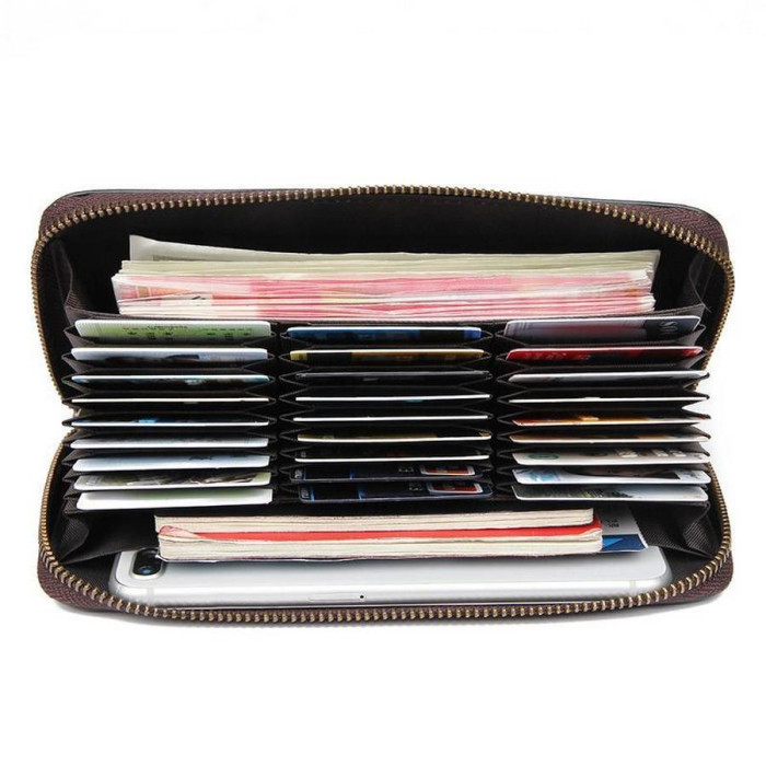Всередині: 27 відділень для карт, 2 відділення для готівки. Застібається на блискавку. Міцний якісний текстиль.