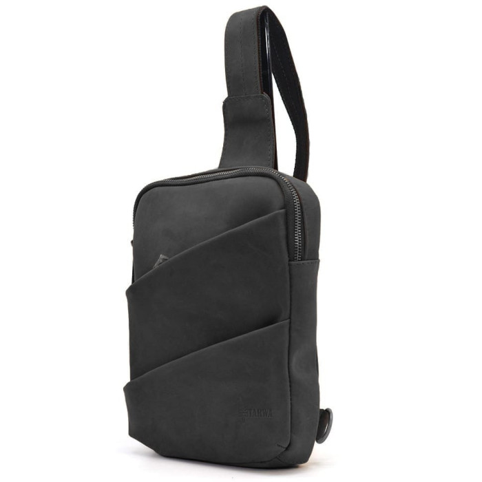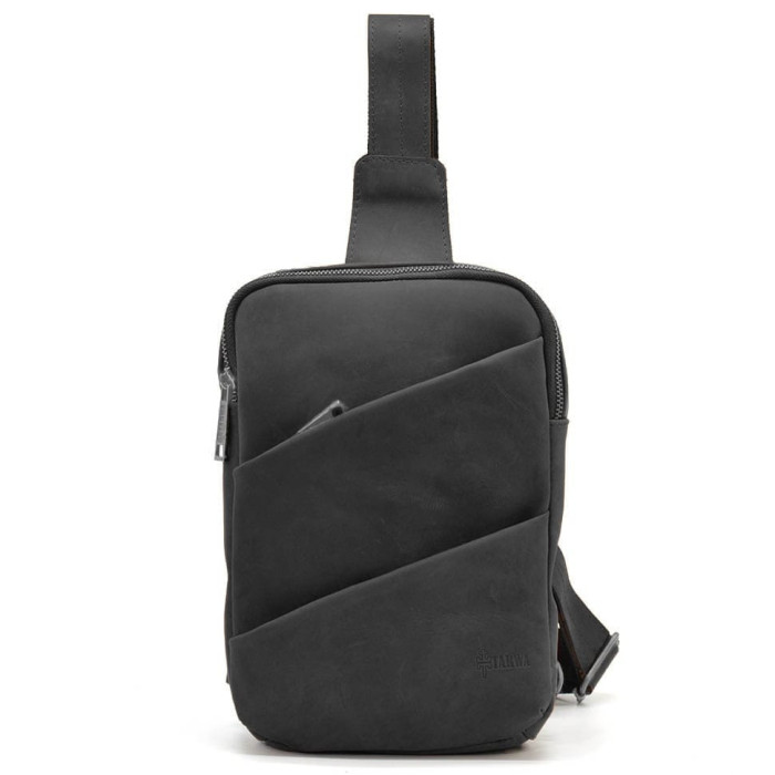 Є вирішення проблеми від українського бренду TARWA- рюкзак шкіряний слінг на одну шлейку RA-0604-3md TARWA чорний крейзі хорс.
