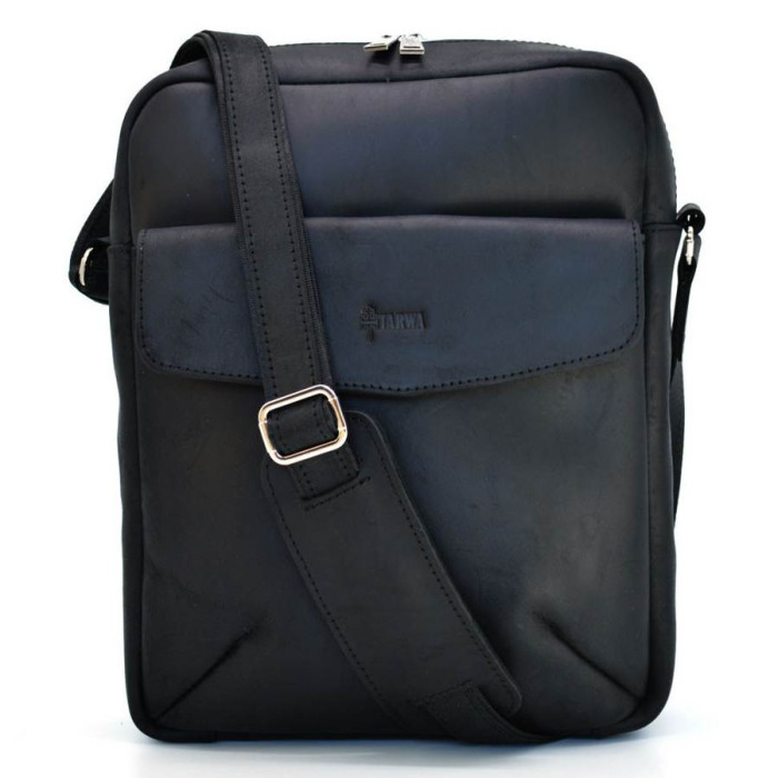 Сумка через плече А4 чоловіча шкіряна TARWA RA-1810-4LX. Підходить для повсякденного носіння, для навчання і роботи. Вміщує формат А4. Сумка складається з одного відділення, всередині якого є ущільнений відсік з хлястиком на липучці, для планшета або документів. Ще є містка кишеня з блискавкою. Аксесуар застібається на блискавку, має незнімний ремінь через плече. На задній стороні сумки є кишеня з блискавкою. На лицьовій стороні аксесуара розташовується місткий кишеню з шкіряним клапаном і логотипом у вигляді гравіювання.