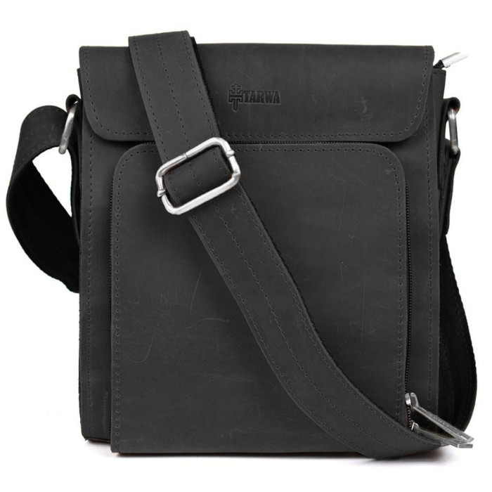 Зручна чоловіча сумка через плече з маленьким клапаном RB-30272-3md бренду TARWA, з натуральної матової шкіри вироблення crazy horse.