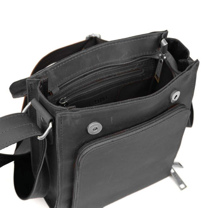 Сумка месенджер 30272 TARWA складається з одного відділення, всередині якого є кишеня на блискавці для особистих документів і ще одна накладна відкрита кишеня для телефону.