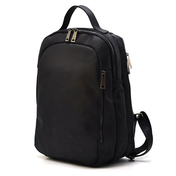 Міський чорний рюкзак RA-3072-3md TARWA шкіра Crazy Horse на два відділення з передньою кишенею. Шкіряні шлейки. Шкіряна ручка. Металева блискавка.