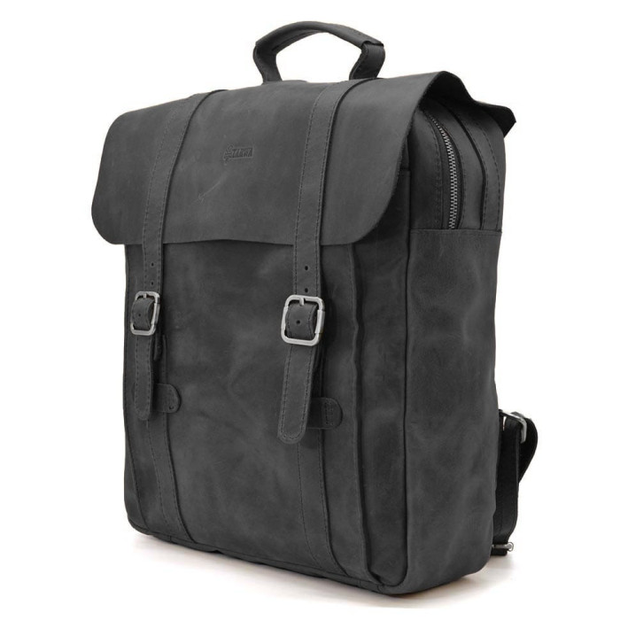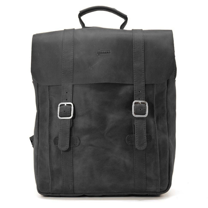 Сумка рюкзак для ноутбука з кінської шкіри TARWA RA-3420-3md чорна Закривається на шкіряний клапан фальш-пряжках - магнітах. Одне відділення на блискавці та передня кишеня відкрита на магніті під клапаном