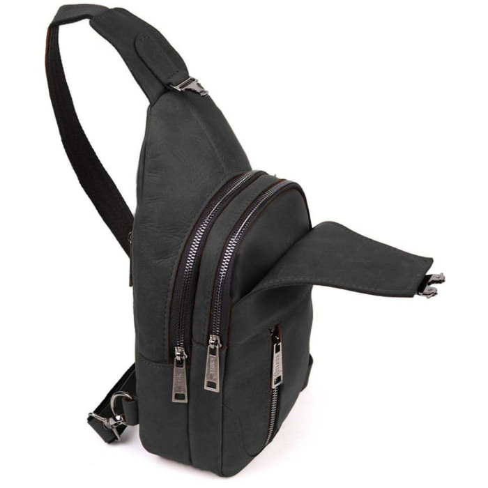 Чоловічий рюкзак слінг із кінської шкіри TARWA RA-4004-3md чорний - стильне та зручне рішення для тих, хто цінує практичність та модний дизайн.