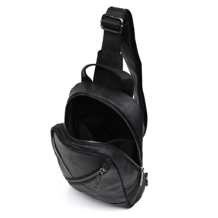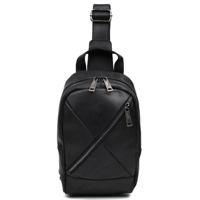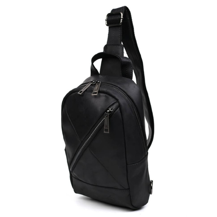 Чоловічий слінг шкіряний рюкзак ТАРВА 6020 виготовлений з кінської шкіри чорного кольору.