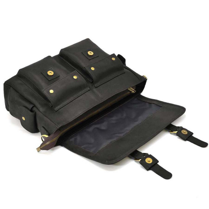 Також, усередині, на іншій стінці є дві відкриті кишені для телефону та портмоне, і ще одна на блискавці. На задній стороні сумки є кріплення для ременя. Лицьову сторону аксесуара прикрашають дві об'ємні кишені, прикриті шкіряним клапаном з ремінцями на магнітах та логотипом бренду. Торцеві сторони виробу оснащені двома кишенями із клапанами зі шкіри, що надають сумці особливий шарм.