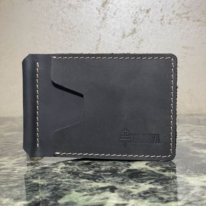 Стильний шкіряний затиск для купюр від українського виробника TARWA. Аксесуар виготовлений з натуральної шкіри Crazy horse, ручної роботи виріб виконаний повністю вручну. У даній моделі TARWA всередині є затиск для купюр і 4 Відділення для карт. Розмір затиску дозволяє легко поміститися в кишеню. Розмір 11.5 см на 8 см.