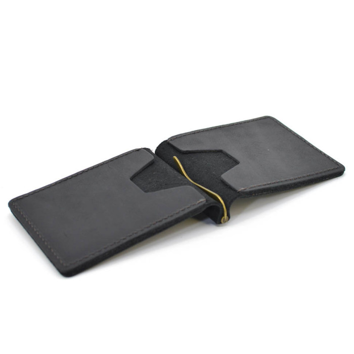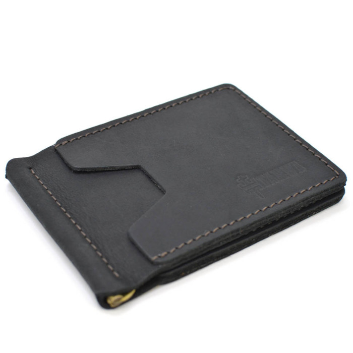 Стильний затиск шкіряний для купюр від українського виробника TARWA RAс-hold-001. Аксесуар виготовлений з натуральної шкіри Crazy horse, ручної роботи. Виріб виконаний повністю вручну. Ця модель TARWA всередині має затискач для купюр і 4 відділення для карт. Розмір затиску дозволяє легко поміститися у кишеню. Розмір 11.5 см на 8 см. Темна нитка.