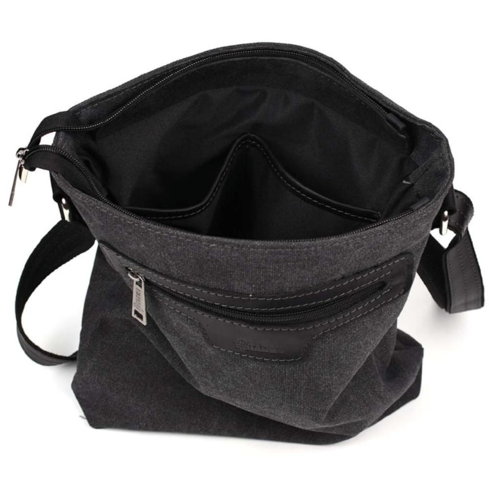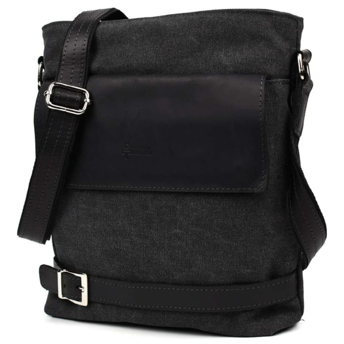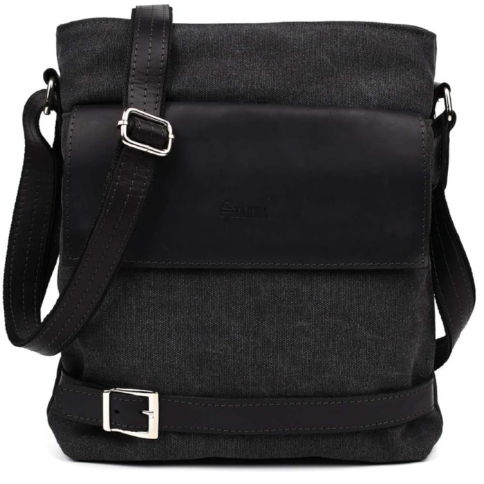 Сумка через плече в комбінації чорний канвас та кінської шкіри RAg-0040-4lx TARWA