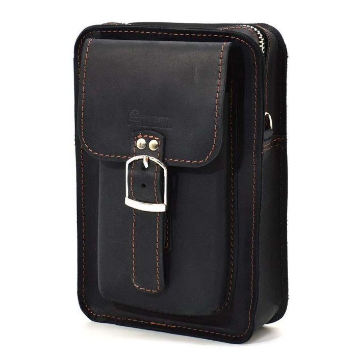 Сумка через плече, напоясна сумка TARWA RAw-0076-3md зі шкіри Crazy Horse Шкіряна сумочка на пояс із товстої кінської шкіри. Буде потрібна для любителів носіння смартфона на поясі або на петлі джинс. Усередині шкіряне оздоблення.