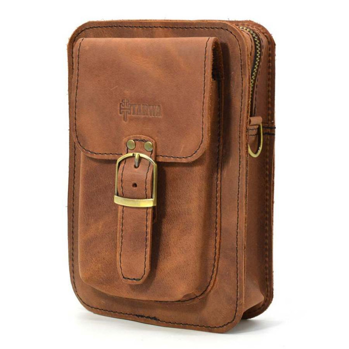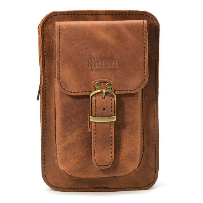 Сумка через плече, сумка напоясна TARWA RB-0076 зі шкіри Crazy Horse Шкіряна сумочка на пояс із товстої кінської шкіри. Буде потрібна для любителів носіння смартфона на поясі або на петлі джинс. Усередині шкіряне оздоблення.