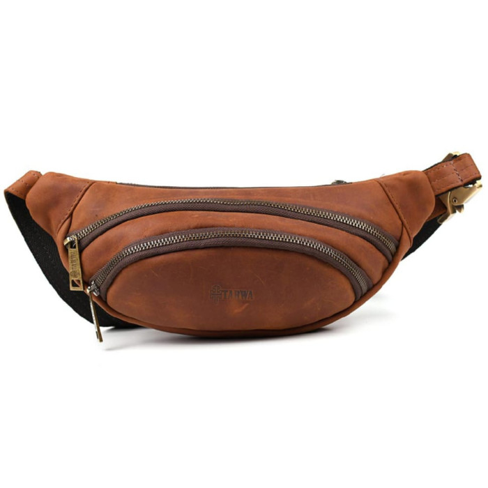 Напоїсна та сумка через плече RB-2406-3md бренду Tarwa - це поєднання зручності, якісної натуральної шкіри та високої якості виробника. У цьому аксесуарі ви зможете розміщувати всі необхідні речі: смартфон, портмоне, ключі, зарядний пристрій та інше. Виконана з натуральної шкіри крейзі хорсу коньячному кольорі. Фурнітура-метал у кольорі "антик". Складається з двох відділень, що закриваються на блискавку. Одного додаткового відділення із внутрішньої сторони сумки на блискавці. Напоясний ремінь регулюється по довжині, виконаний зі шкіри та текстилю. Цей аксесуар гармонійно розподіляється по фігурі власника, завдяки відшиву та своїй формі.