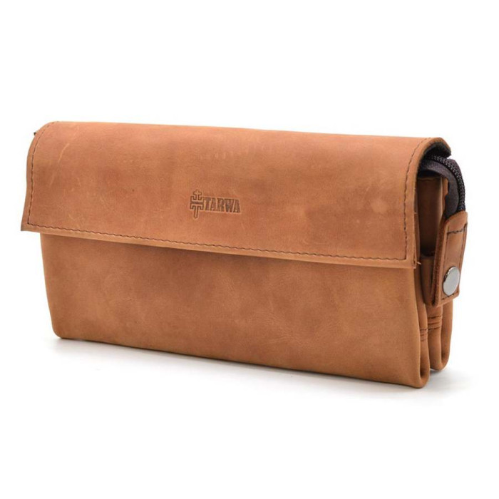 Клатч чоловічий шкіряний коньячного кольору зі шкіри крейзі хорс RB-2801-3md від українського бренду TARWA. Модель на три відділення, зі шкіряним клапаном на магнітах Всередині в одному з відділень є врізна кишеня. В іншому, два слоти під пластикові картки або візитки, у вигляді шкіряної кишеньки. Між цими відділеннями розташовується маленьке плоске відділення. Клатч застібається на загальну блискавку та зверху накривається шкіряним клапаном на магнітні кнопки. На задній стороні сумки є шкіряна ручка-тримач. Аксесуар виглядає стильно та дорого. І буде корисним як для щоденного носіння під джинси, так і для заходів, де потрібний діловий образ.