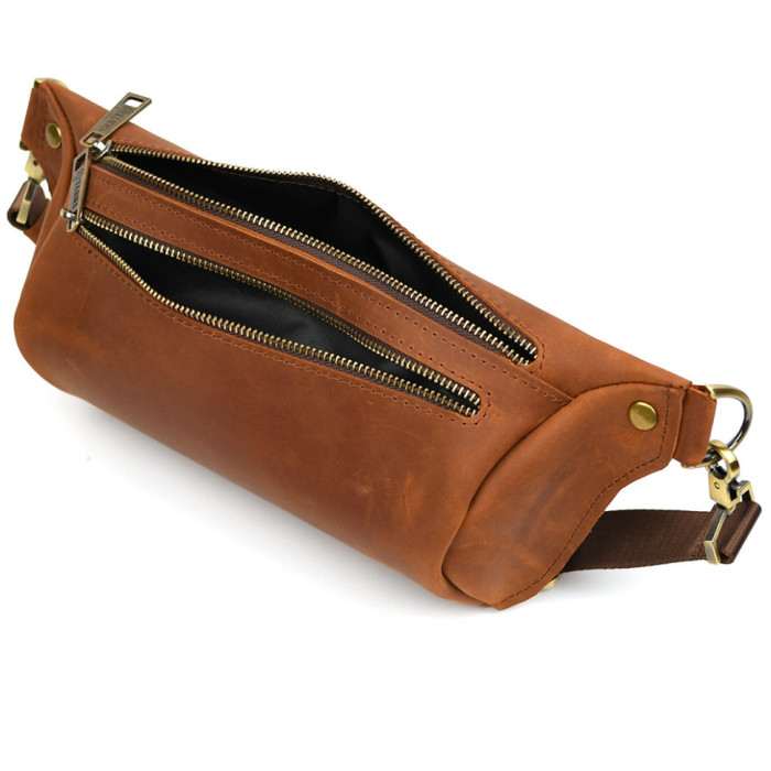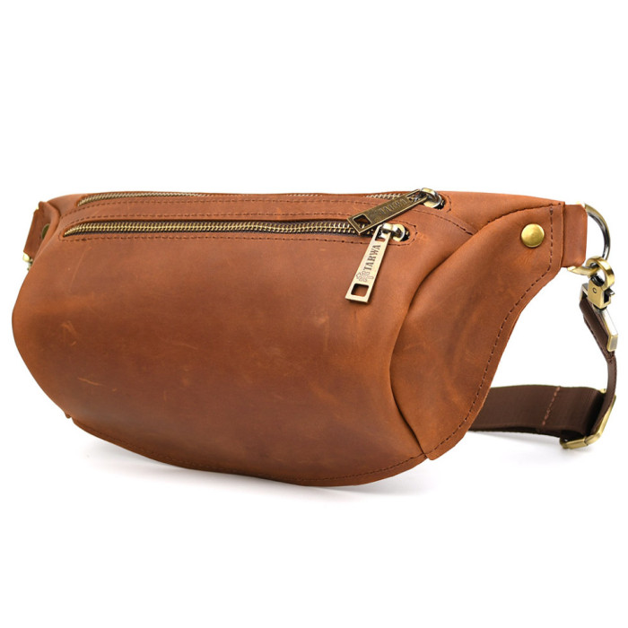 Сумка на пояс пошита з кінської шкіри з металевою фурнітурою та блискавками