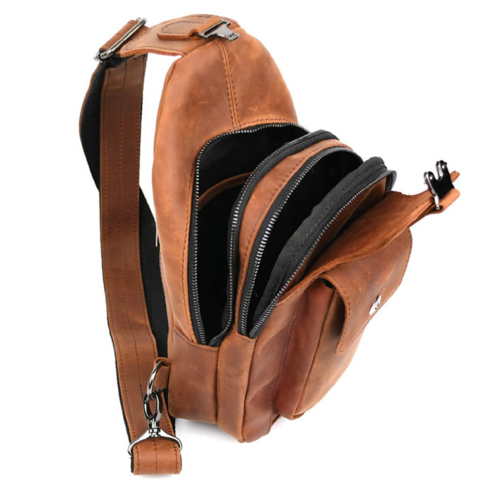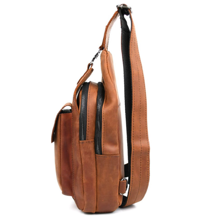 Модний рюкзак на моношлейці із натуральної телячої шкіри TARWA RB-4007-3md виготовлений з високоякісної натуральної кінської шкіри класичного коньячного кольору з оригінальною фактурою на дотик.