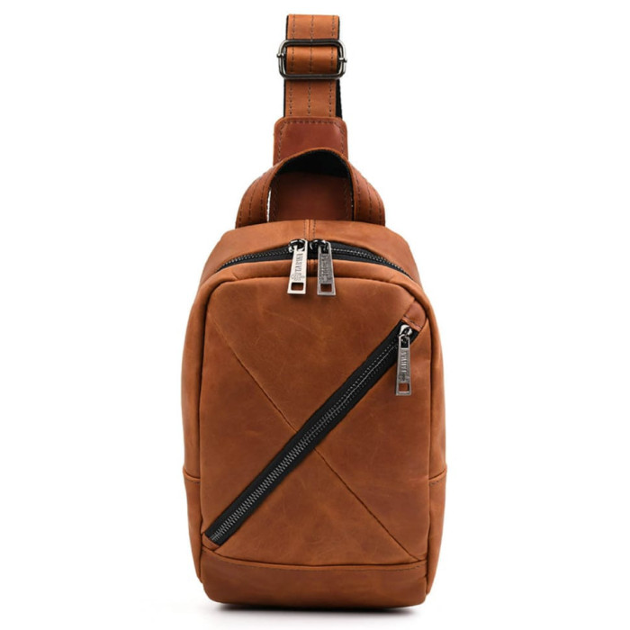 Чоловічий слінг шкіряний рюкзак ТАРВА 6010 виготовлений з кінської шкіри коньячного кольору.