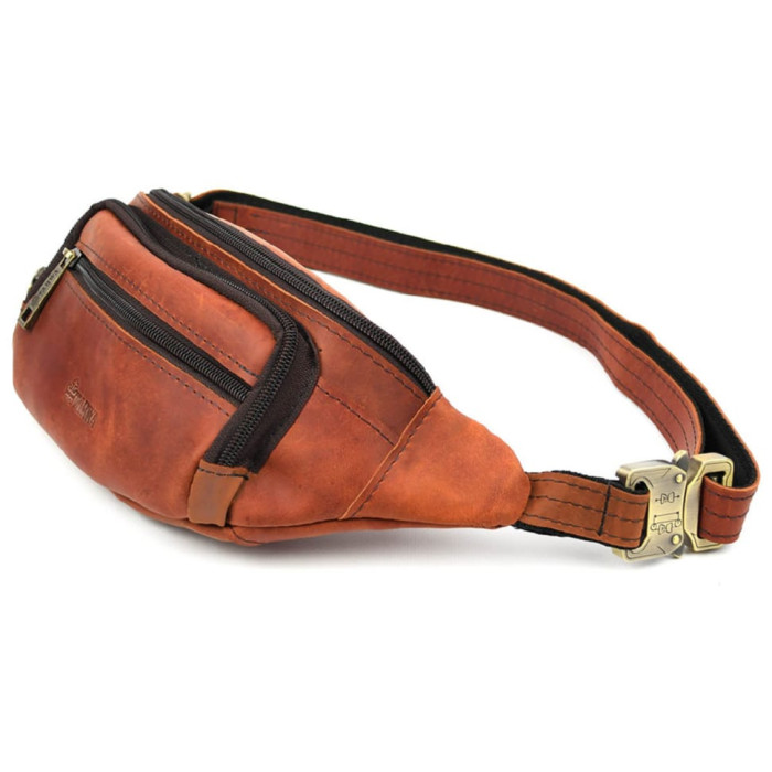 Бананка шкіряна, сумка напоясна коричневий крейзі хорс TARWA RC-7218-3md Сумка має два великі основ..